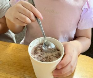 子ども達の計画したドリンクで、自分で好きな組み合わせでオリジナルドリンクを作りました。冷たいカラフルなドリンクに子ども達もニコニコでした😊