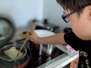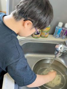 コンロを使用するので、熱くなる場所に注意しながら行いました。