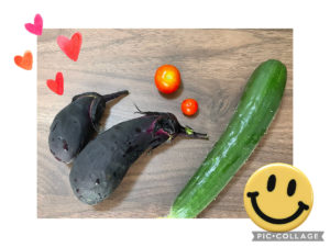 ミニトマト、ナス、キュウリ、おくら、ピーマンです。