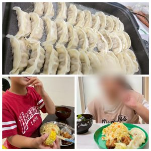 買い物後は自分たちで買ってきた材料を切って、焼きそば&ポテトサラダを作りました(*^^)v
