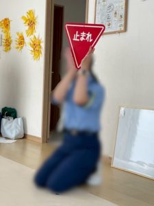 道路標識がどんな意味を持っているのか確認したり、横断歩道を渡る練習もしました。