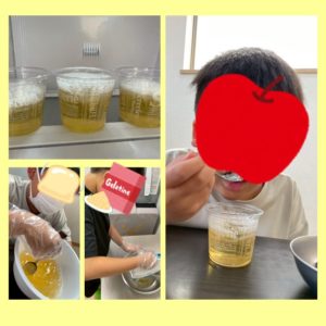 しかしただのゼリーではありません。作ったのはリンゴジュースを使った『ビールのようなゼリー』です(*^-^*)