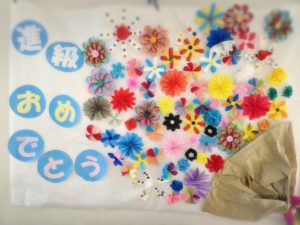 今月は、様々な種類のお花を作って、春の壁面+卒業に向けての壁面づくりをしました!!