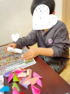 花びらになるところを何枚か半分で折りって台紙にのりで貼っていきます!!