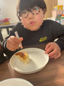 焼くといい匂いがただよってきて、はやくたべたい!まだ~??とそわそわ。