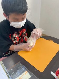 生地を広げたり、ツナマヨコーンを真ん中にいれて包む作業は手や手先を使うため、手や手先をうまく使わないとうまく包めず…