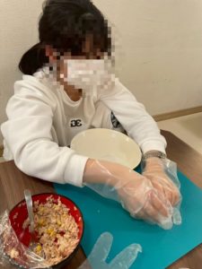 おやつのフードではツナマヨコーンのおやきをつくりました。