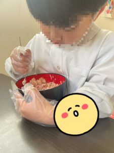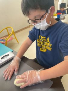 ツナマヨコーンを作ってもらったり、みんなに生地を広げて中にツナマヨコーンをつめてもらい、おやきの形にしてもらいました😍