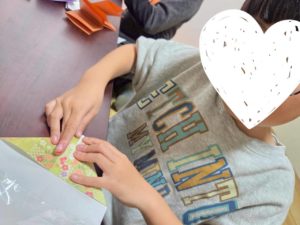 16枚同じものを作ると伝えるだけでも「えー!!そんなに折るの?!」という子や「全然余裕(^^♪」という子感想は人それぞれです⭐そして作るペースも個人差があります。1日で完成は、難しいとスタッフ間でも思っていましたが…どの子も1日で作る!!という意気込みがすごい✨