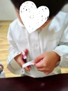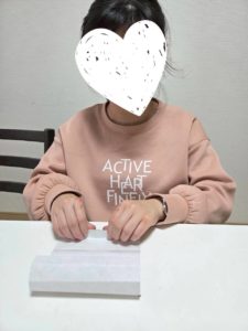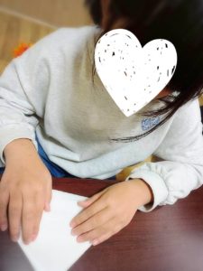 とても集中して折る姿がとても素敵でした♡折り紙が苦手でも1.2度折り方を繰り返し伝えていくと覚えてきた様子で一人で黙々と作っていました!!じっくり時間をかけており、今度は組み立て…!「あー崩れる」「そっとやらなきゃいけないんだね」と組み立てていく工程の中でもそれぞれの気づきがある様子でした(^^♪