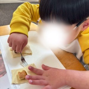 見た目は少し不思議ですが、「おいしい!」と笑顔で食べる様子が見られました👏